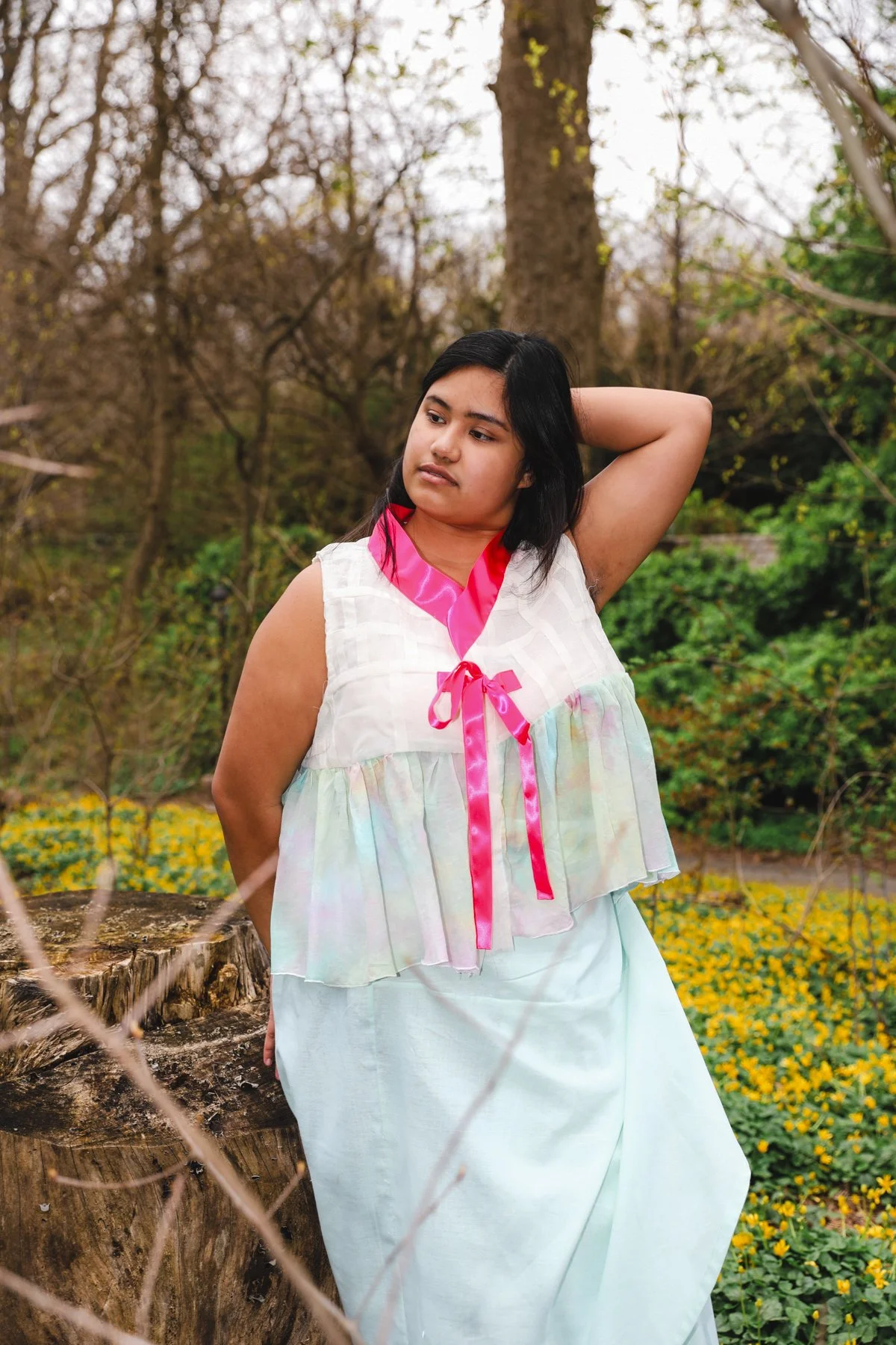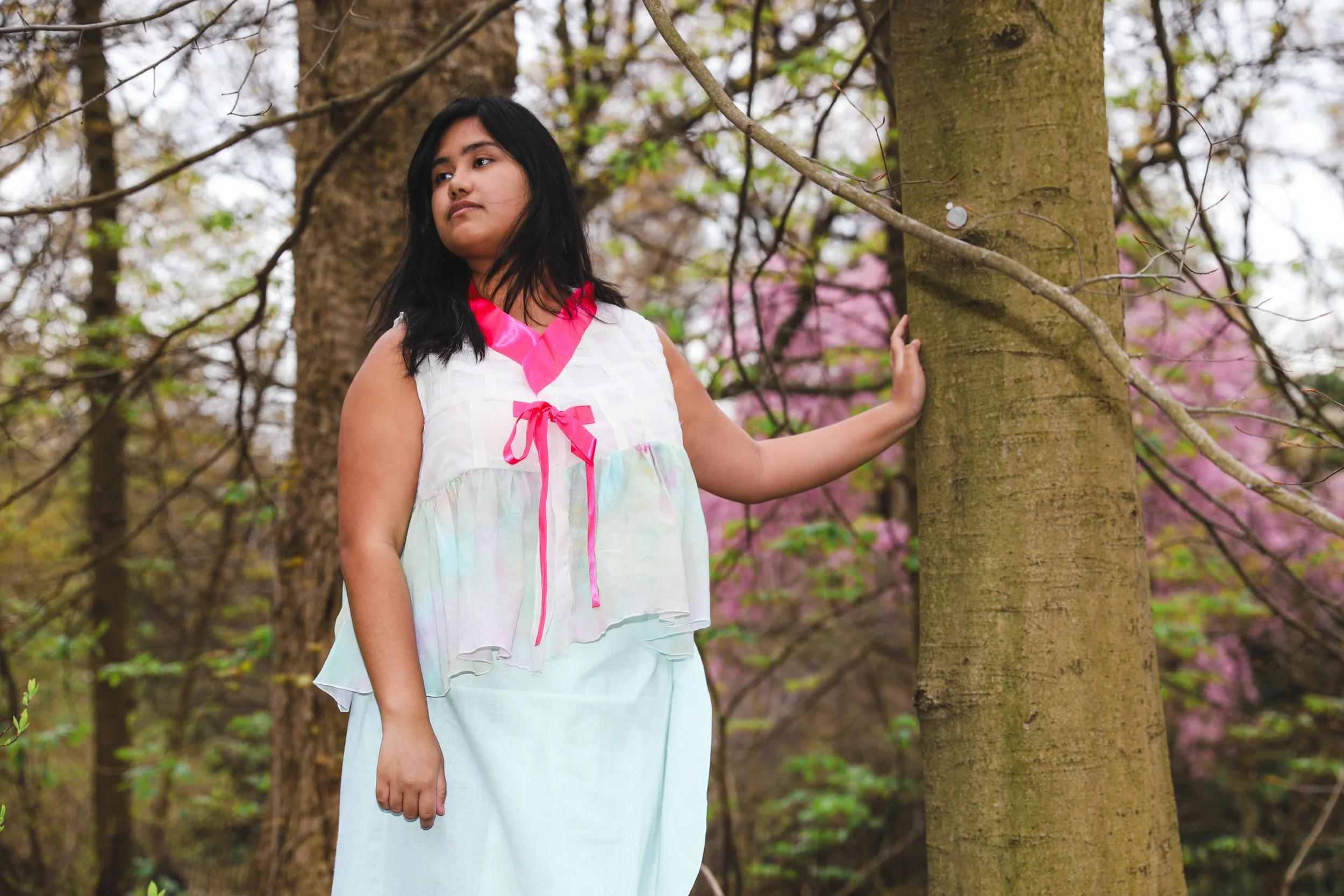 This collection is not just a showcase but a celebration of plus-size forms, by employing dyeing techniques to produce vibrant colors and flattering silhouettes. Complementing my garments, my accessories further unify the collection of self-identity.