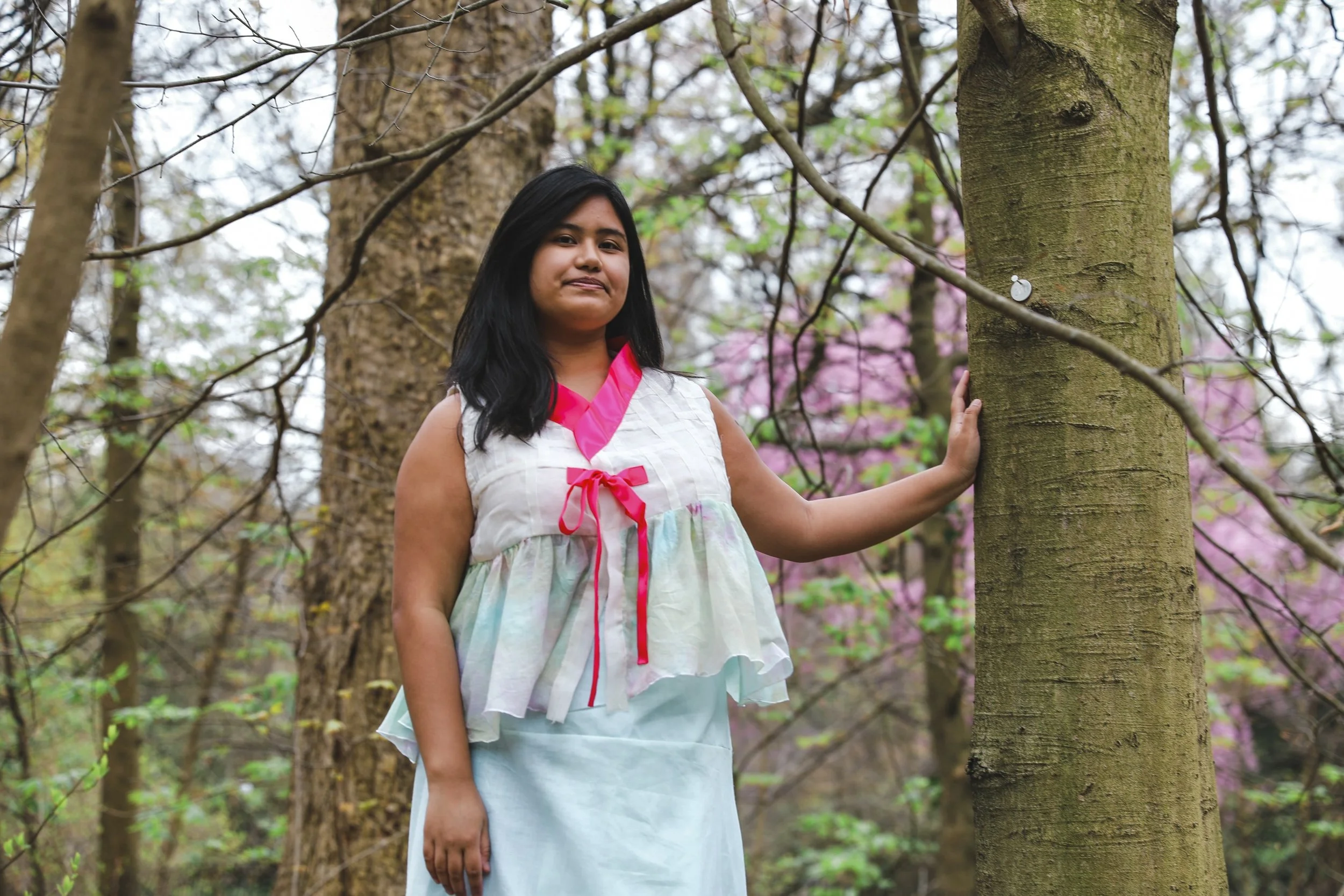 I aimed to address the complexity of navigating the world around as a plus-size individual myself. Growing up as a plus-size gyopo, I tried to find what being a Korean American means to me, through blends of Korean patchwork jogakbo and crumb quilting and repurposing second-hand materials. The importance of using what you have is further shown through patchwork and weaving.