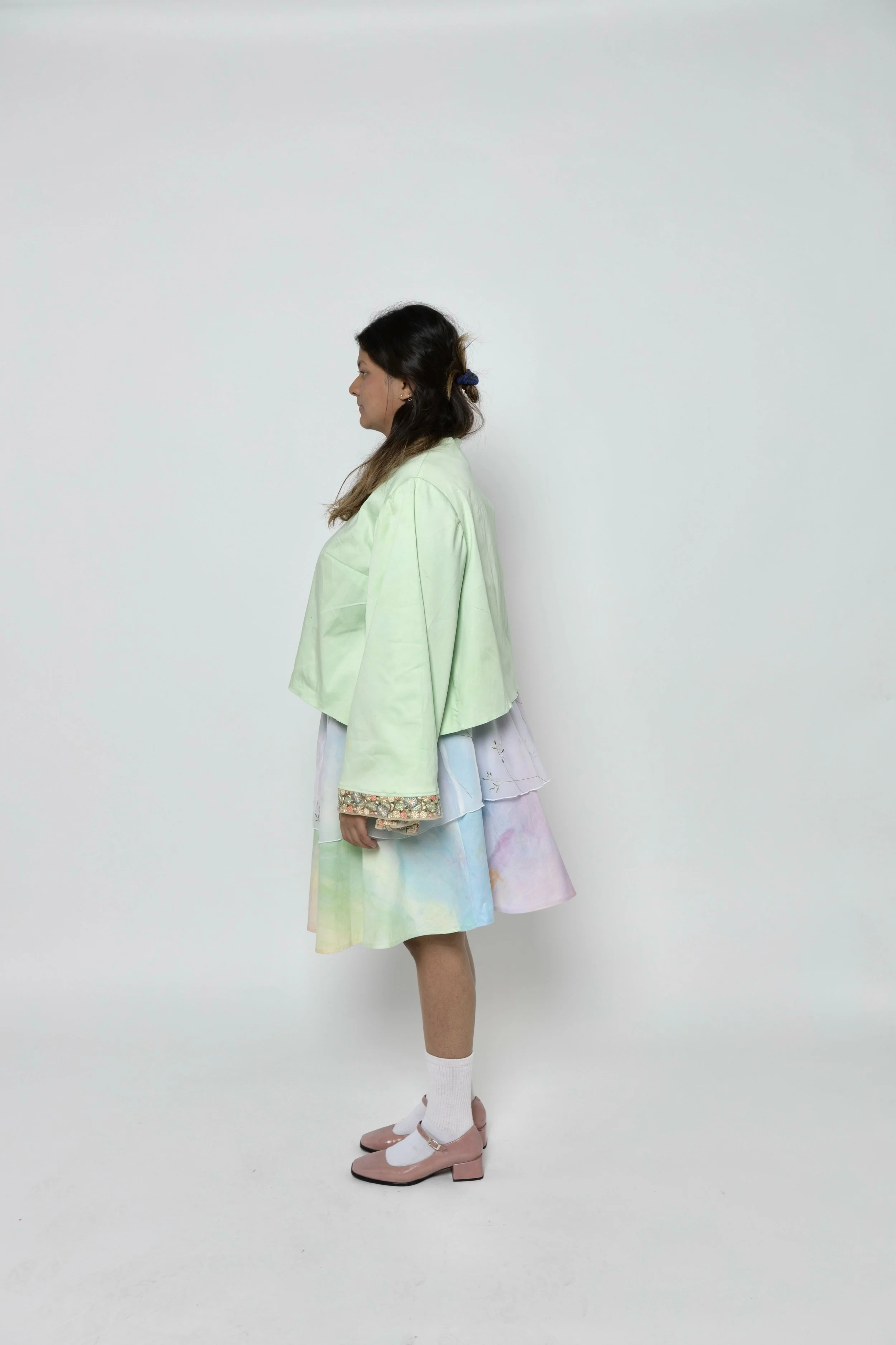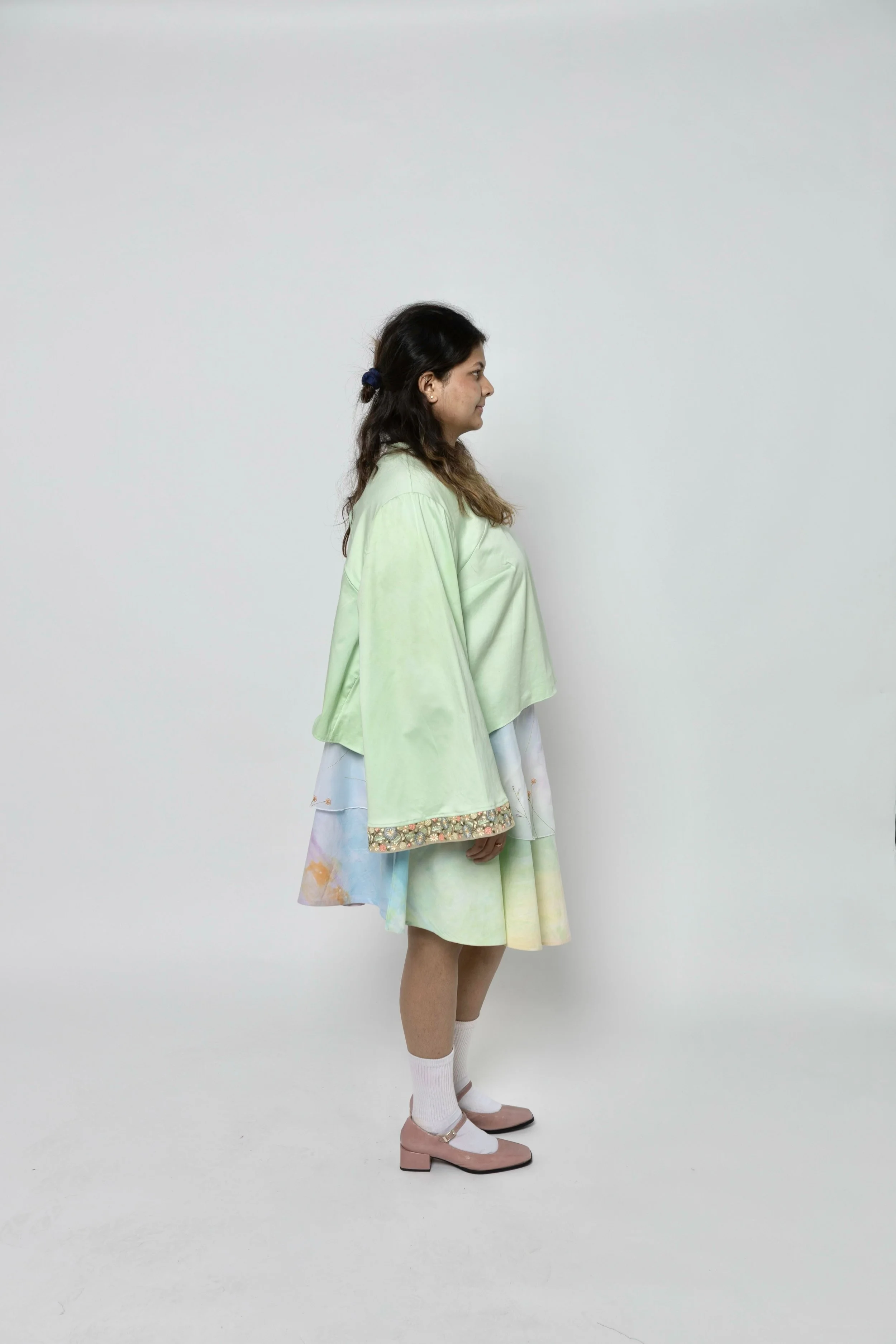 Look 4 is a dyed flared top + dyed layered tie skirt.